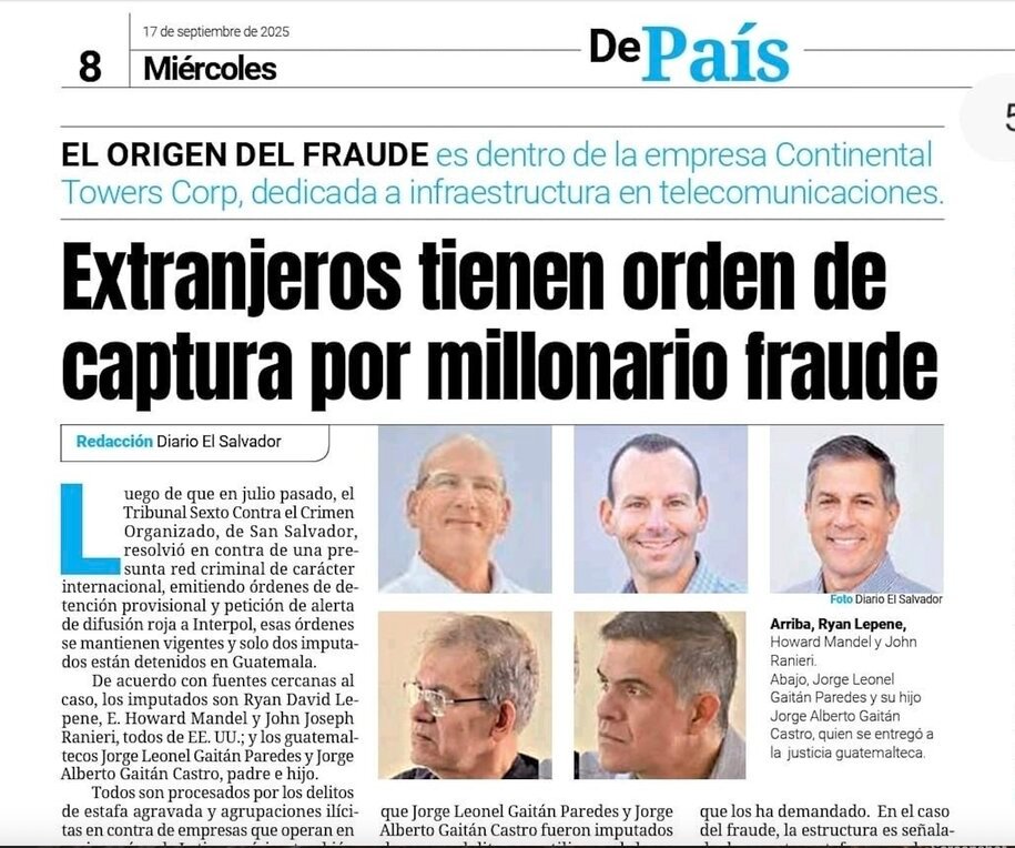 Los guatemaltecos detenidos —Jorge Leonel y Jorge Alberto Gaitán, padre e hijo— eran altos funcionarios de Continental Towers y están acusados de malversación de fondos y de colaborar con los estadounidenses y Goldman Sachs en el intento de adquisición.